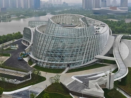 安徽阜陽(yáng)大劇院,建筑立意為“七彩玫瑰”,整體為一曲面的非線性形體,外幕墻弧面的流動(dòng)感及卷曲的屋面造型,異型鋼結(jié)構(gòu)從里至外逐層展開(kāi),寓意著劇院的文化藝術(shù)氣質(zhì)。